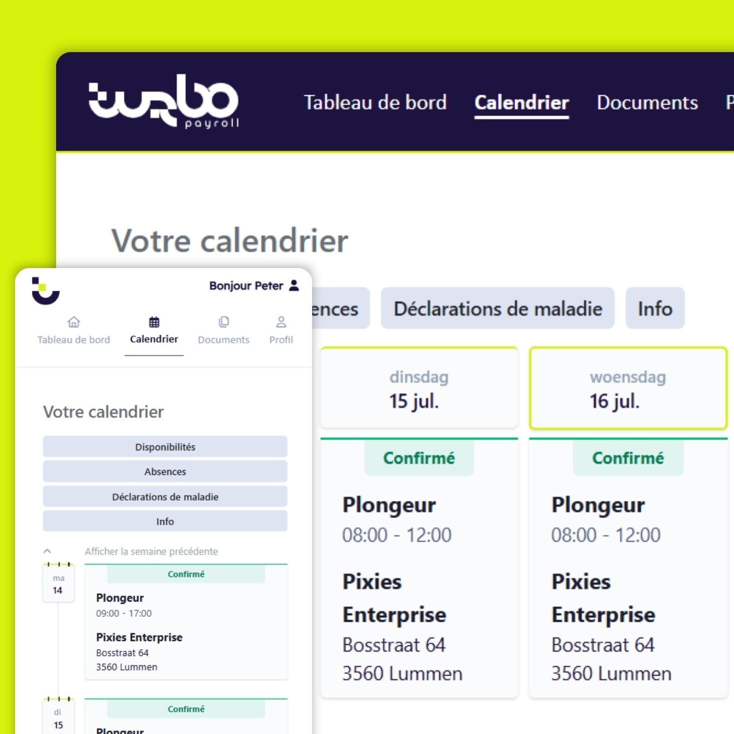 TurboPayroll est également là pour vous, en tant qu’intérimaire. Grâce à notre plateforme en ligne, vous réglez tout facilement et de façon numérique :